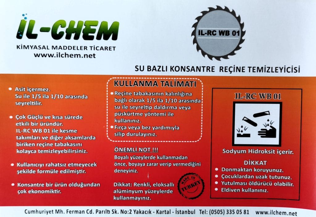 Bir birim IL- RC WB 01 ’i reçine tabakasının kalınlığına bağlı olarak beş ila on birim su ile seyreltiniz. Temizlenecek aksamları içine daldırınız.20-30 dk’lık bekleme süresinden sonra fırça veya bez yardımı ile silip,durulayabilirsiniz. Reçine tabakasının kalınlığına bağlı olarak daldırma süresi kısalabilir veya uzayabilir.